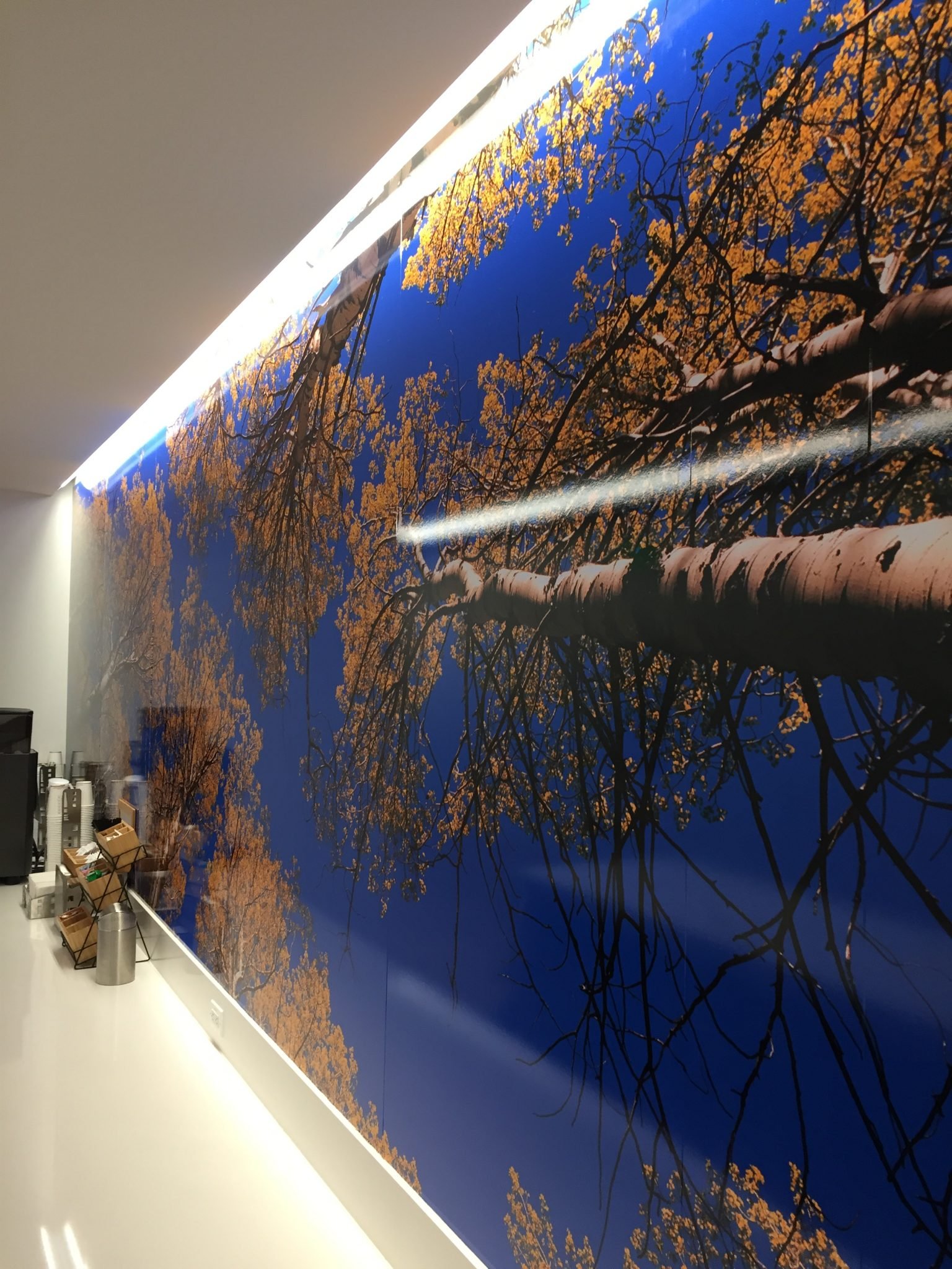 Wall murals are as versatile as they are impactful. We’ve created designs for everything from nursery murals that brighten pediatric offices to tree wall murals and forest wall murals that bring a sense of calm to spas and wellness centers. Retail stores utilize large wall murals to showcase their seasonal collections, while corporate offices rely on custom-printed wallpaper to reinforce their brand culture.